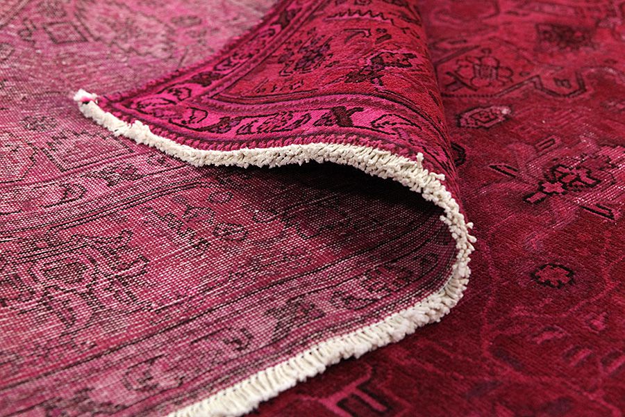 Vintage Carpets : Vintage carpets by Carpetu2 are produced from older Persian handmade carpets aged at least 40-60 years with a long history. Each carpet is carefully selected and subjected to a unique process of reducing the pile to a minimum and neutralizing the color before to be painted in a new exciting color. The result is a combination of the old with the new, the traditional carpet design combined with a modern retro style. Vintage carpets can lose some of their original features and become even more unique in their appearance over time in modern new colors and old unique designs.