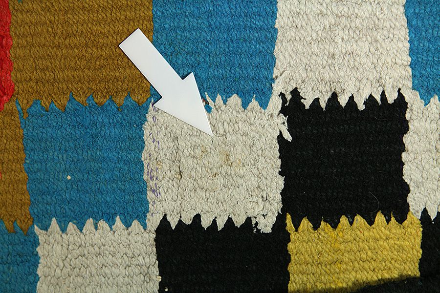 Abrash: Due to the different amount of grease in the wool and the added salt during the process of dyeing, the wool has got a varying colour absorbance. This is not very visible before weaving. During the weaving though, lines of the same colour are formed in the carpet. This is called Abrash (which in Farsi means little cloud) and it shows that the wool was not manufactured using chemical means and marks the naturalness and authenticity of the carpets. Examples
