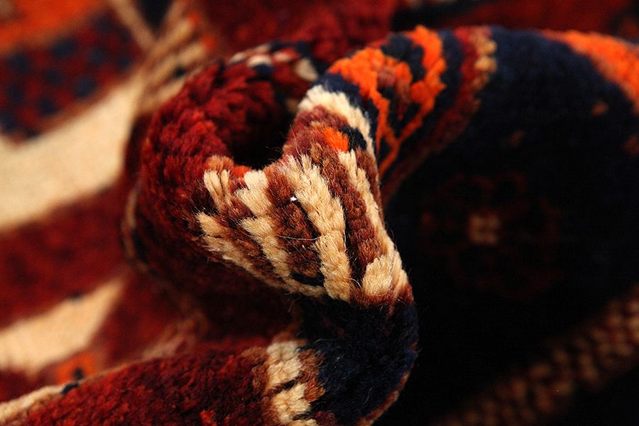 Abrash: Due to the different amount of grease in the wool and the added salt during the process of dyeing, the wool has got a varying colour absorbance. This is not very visible before weaving. During the weaving though, lines of the same colour are formed in the carpet. This is called Abrash (which in Farsi means little cloud) and it shows that the wool was not manufactured using chemical means and marks the naturalness and authenticity of the carpets. Examples