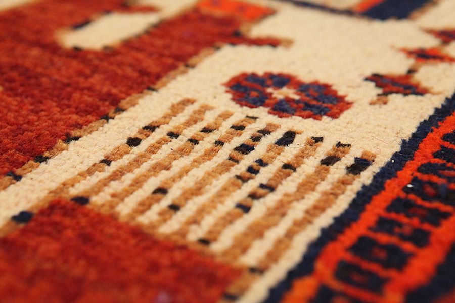 Qashqai Carpets : Qashqai carpets are woven by nomads who live in the mountainous areas of Southwest Persia, the provinces of Fars, Khuzestan, south of Isfahan and around the city Shiraz. Their carpets have a high knot density and a wide variety of designs, usually in deep red and blue colors. They weave carpets, Kilims and decorative textiles (ribbons, bags, etc.), which depict scenes from their lives with various representation of humans, animals, birds, trees and flowers. They also depict historical monuments, mostly from Persepolis.