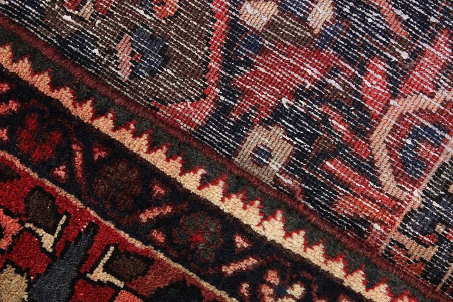 Abrash: Due to the different amount of grease in the wool and the added salt during the process of dyeing, the wool has got a varying colour absorbance. This is not very visible before weaving. During the weaving though, lines of the same colour are formed in the carpet. This is called Abrash (which in Farsi means little cloud) and it shows that the wool was not manufactured using chemical means and marks the naturalness and authenticity of the carpets. Examples