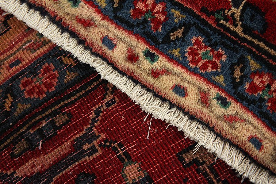 Abrash: Due to the different amount of grease in the wool and the added salt during the process of dyeing, the wool has got a varying colour absorbance. This is not very visible before weaving. During the weaving though, lines of the same colour are formed in the carpet. This is called Abrash (which in Farsi means little cloud) and it shows that the wool was not manufactured using chemical means and marks the naturalness and authenticity of the carpets. Examples