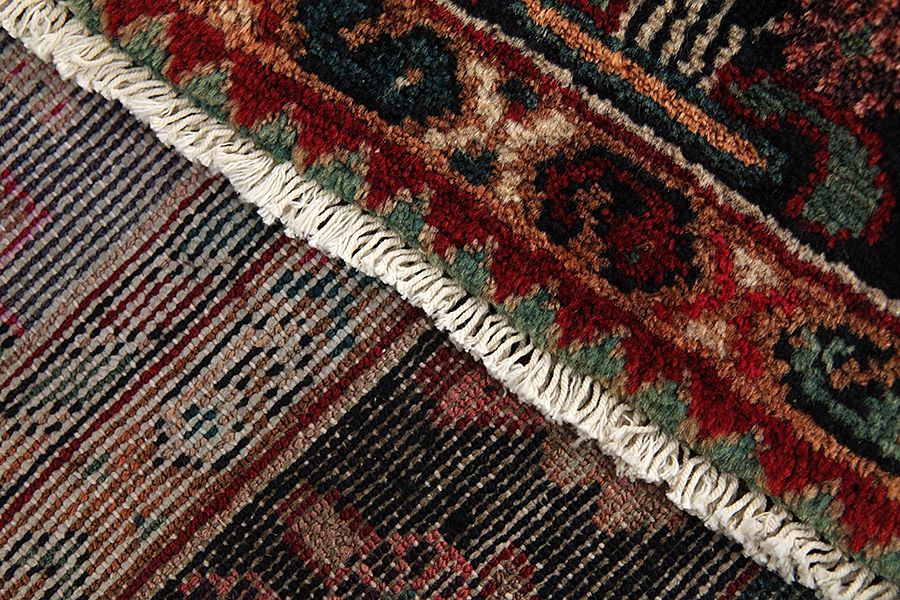 Abrash: Due to the different amount of grease in the wool and the added salt during the process of dyeing, the wool has got a varying colour absorbance. This is not very visible before weaving. During the weaving though, lines of the same colour are formed in the carpet. This is called Abrash (which in Farsi means little cloud) and it shows that the wool was not manufactured using chemical means and marks the naturalness and authenticity of the carpets. Examples
