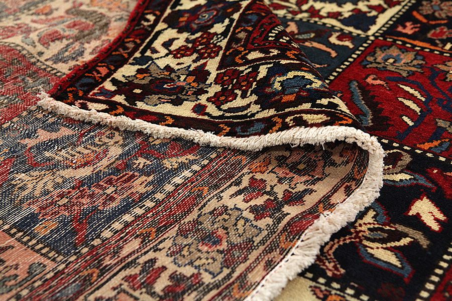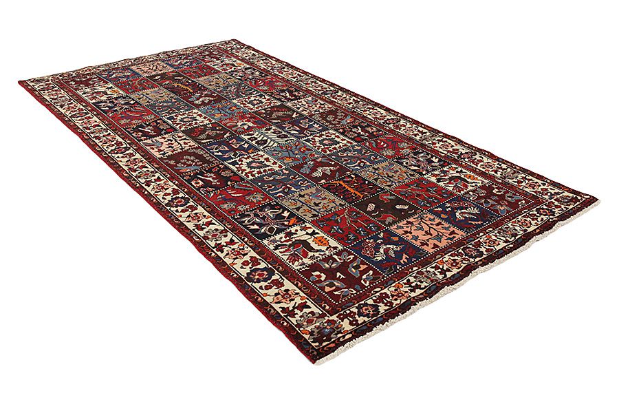 Bakhtiari Carpets : In the mountains Zagros, west of the city of Isfahan, around the town of Shahr-e-Kurd, live the nomads Bakhtiar. Their carpets are known for the design with various repeating squares in which flowers and animals are depicted. For this reason the design is called "garden"(Khesti). Their carpets are very durable with a dense weave and very good quality Persian wool coming from sheep grazing at a high altitude. The best Bakhtiar rugs and carpets with highest knot density are often called Bibibaff. Also in many designs we see influences from Isfahan carpets. (Boldaji - Feridan - Saman).