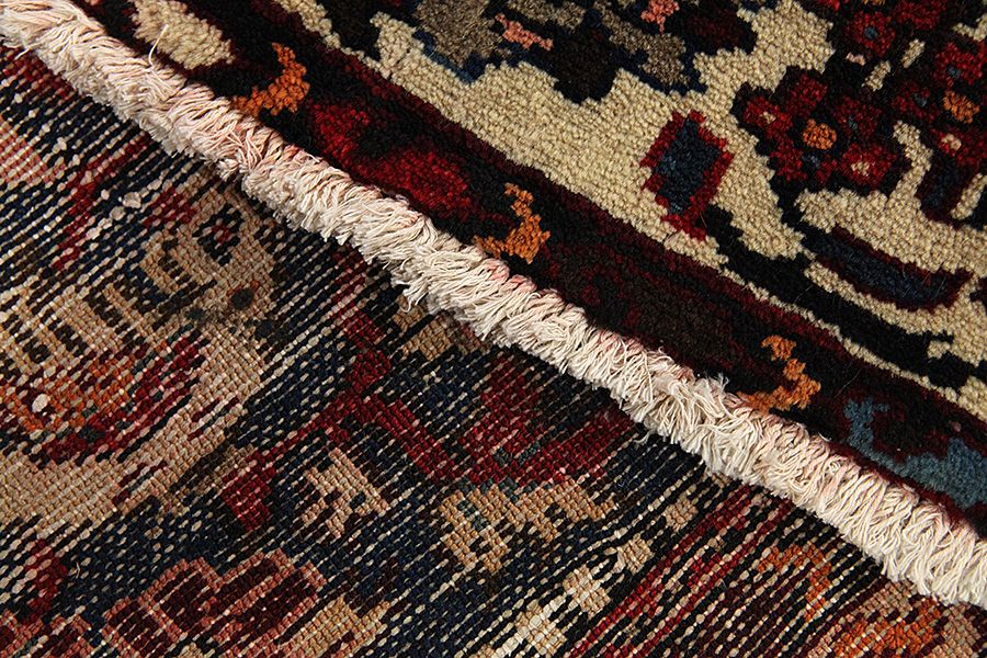 Abrash: Due to the different amount of grease in the wool and the added salt during the process of dyeing, the wool has got a varying colour absorbance. This is not very visible before weaving. During the weaving though, lines of the same colour are formed in the carpet. This is called Abrash (which in Farsi means little cloud) and it shows that the wool was not manufactured using chemical means and marks the naturalness and authenticity of the carpets. Examples