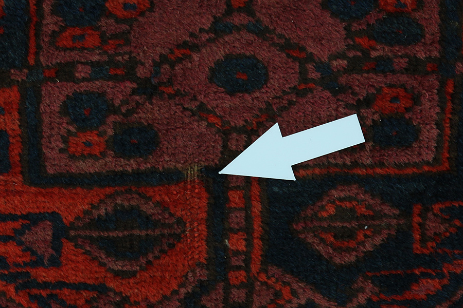 Abrash: Due to the different amount of grease in the wool and the added salt during the process of dyeing, the wool has got a varying colour absorbance. This is not very visible before weaving. During the weaving though, lines of the same colour are formed in the carpet. This is called Abrash (which in Farsi means little cloud) and it shows that the wool was not manufactured using chemical means and marks the naturalness and authenticity of the carpets. Examples