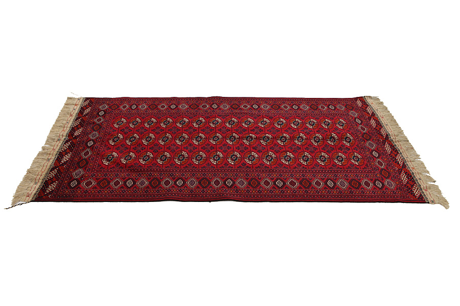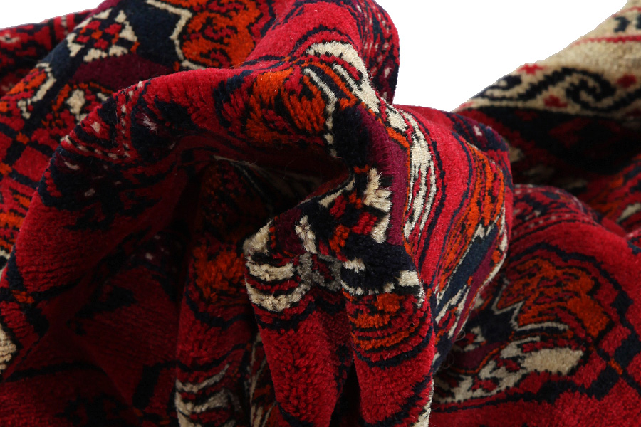 Bokhara Carpets : The Bokhara carpets are woven in Belutchistan and in different regions of Uzbekistan, Turkmenistan and Afghanistan. Turkmen carpets include Basjir, Salor, Tekke-Bochara, Jolam-Bocharaband, Ersari, Tjaudor and Yomut which are examples of the carpet style called Bokhara. Some areas of Turkmenistan where carpets are woven are Ashkabad, Bakharden, Geok-Tepe, Kizyl-Arvat and Merv. The deep red and the whole range of red from purple to brown are the dominant colors with repeating octagons, rhombi, yomut motifs being characteristic of these carpets. The warp of the carpets is always wool.