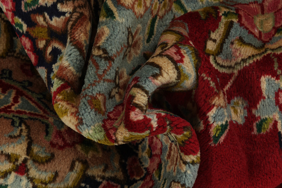 Abrash: Due to the different amount of grease in the wool and the added salt during the process of dyeing, the wool has got a varying colour absorbance. This is not very visible before weaving. During the weaving though, lines of the same colour are formed in the carpet. This is called Abrash (which in Farsi means little cloud) and it shows that the wool was not manufactured using chemical means and marks the naturalness and authenticity of the carpets. Examples