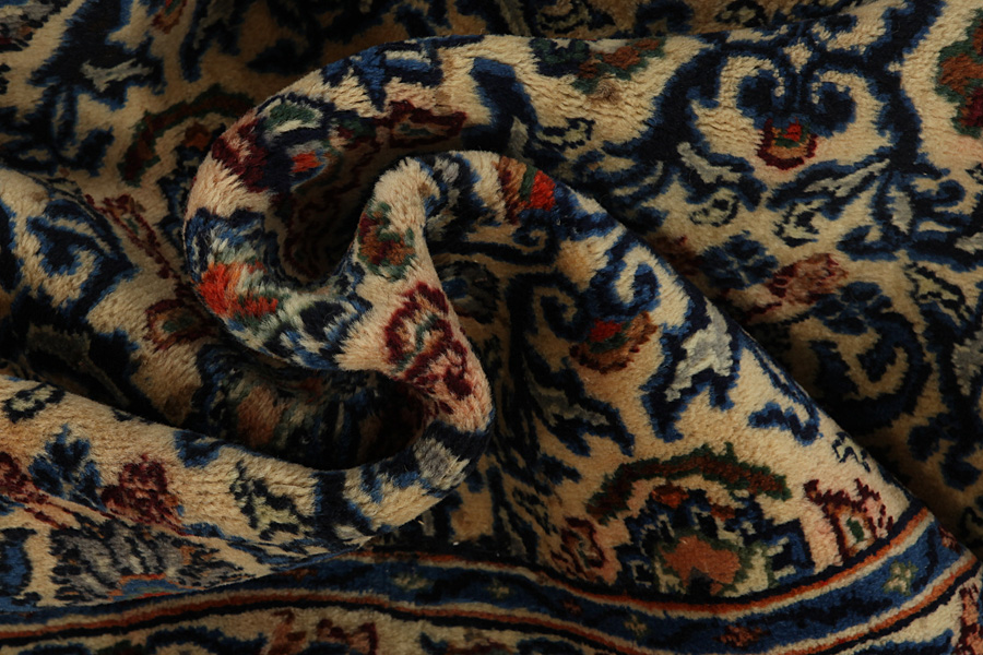 Abrash: Due to the different amount of grease in the wool and the added salt during the process of dyeing, the wool has got a varying colour absorbance. This is not very visible before weaving. During the weaving though, lines of the same colour are formed in the carpet. This is called Abrash (which in Farsi means little cloud) and it shows that the wool was not manufactured using chemical means and marks the naturalness and authenticity of the carpets. Examples