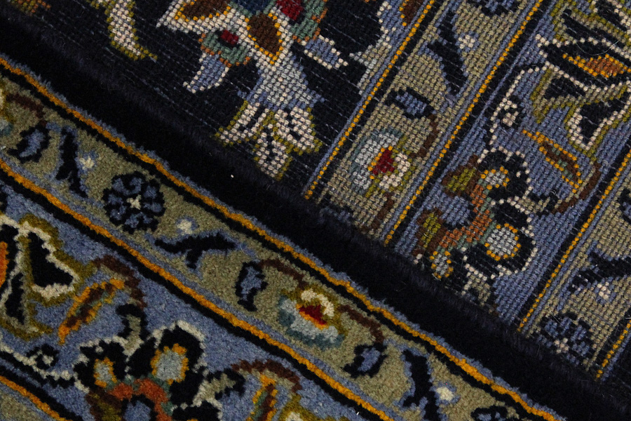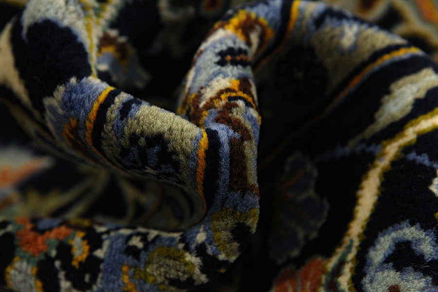 Abrash: Due to the different amount of grease in the wool and the added salt during the process of dyeing, the wool has got a varying colour absorbance. This is not very visible before weaving. During the weaving though, lines of the same colour are formed in the carpet. This is called Abrash (which in Farsi means little cloud) and it shows that the wool was not manufactured using chemical means and marks the naturalness and authenticity of the carpets. Examples