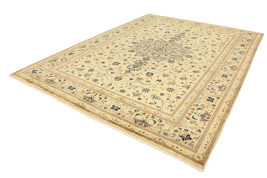 Tabriz Carpets : The city of Tabriz is the capital of Azerbaijan province in Northwestern Iran. Until the end of the caravans era it was the most important centre for trade and carpet weaving. Tabriz supplied the West with masterpieces that were made by renowned and very capable weavers. Their high quality of Tabriz carpets made them renowned in world markets. Many workshops where created where hand-woven carpets with very high density knots and high quality materials where woven. Silk and fine quality wool establish these carpets as very high class. No other city in Persia produced such large quantity or variety of carpets. With or without a medallion, their designs are full of imagination and individuality. Flowers, scenes, stanzas of poems often decorate them. Their predominant colors are beige, blue and red.