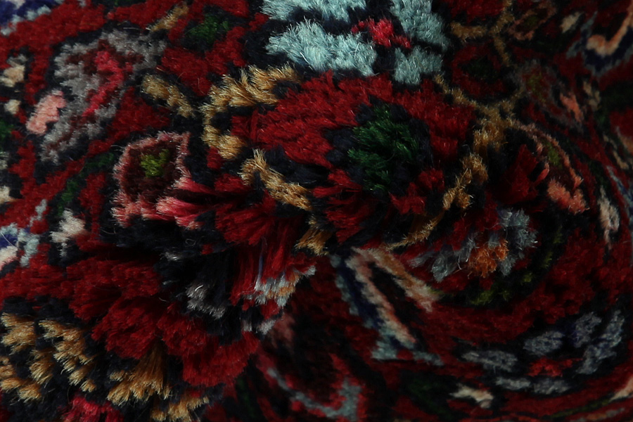 Abrash: Due to the different amount of grease in the wool and the added salt during the process of dyeing, the wool has got a varying colour absorbance. This is not very visible before weaving. During the weaving though, lines of the same colour are formed in the carpet. This is called Abrash (which in Farsi means little cloud) and it shows that the wool was not manufactured using chemical means and marks the naturalness and authenticity of the carpets. Examples