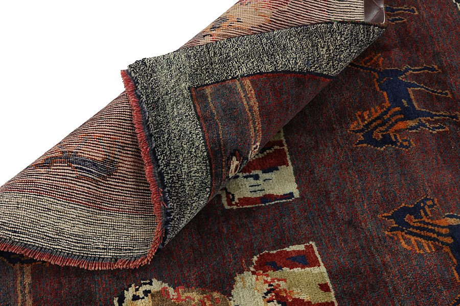Qashqai Carpets : Qashqai carpets are woven by nomads who live in the mountainous areas of Southwest Persia, the provinces of Fars, Khuzestan, south of Isfahan and around the city Shiraz. Their carpets have a high knot density and a wide variety of designs, usually in deep red and blue colors. They weave carpets, Kilims and decorative textiles (ribbons, bags, etc.), which depict scenes from their lives with various representation of humans, animals, birds, trees and flowers. They also depict historical monuments, mostly from Persepolis.