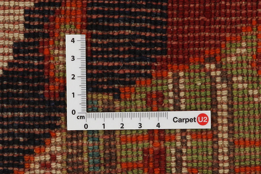Abrash: Due to the different amount of grease in the wool and the added salt during the process of dyeing, the wool has got a varying colour absorbance. This is not very visible before weaving. During the weaving though, lines of the same colour are formed in the carpet. This is called Abrash (which in Farsi means little cloud) and it shows that the wool was not manufactured using chemical means and marks the naturalness and authenticity of the carpets. Examples