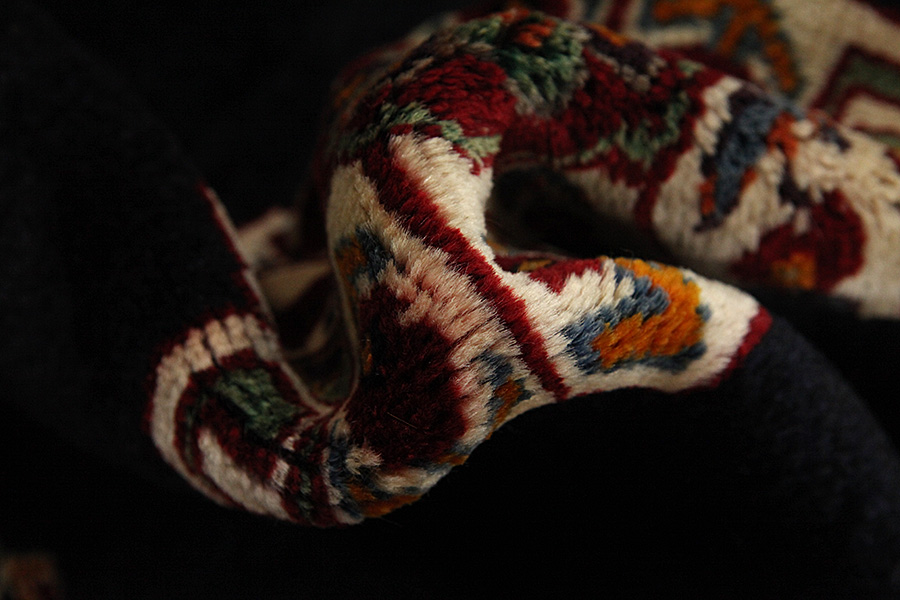 Abrash: Due to the different amount of grease in the wool and the added salt during the process of dyeing, the wool has got a varying colour absorbance. This is not very visible before weaving. During the weaving though, lines of the same colour are formed in the carpet. This is called Abrash (which in Farsi means little cloud) and it shows that the wool was not manufactured using chemical means and marks the naturalness and authenticity of the carpets. Examples