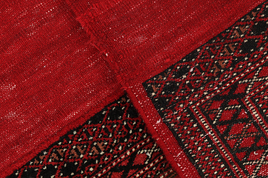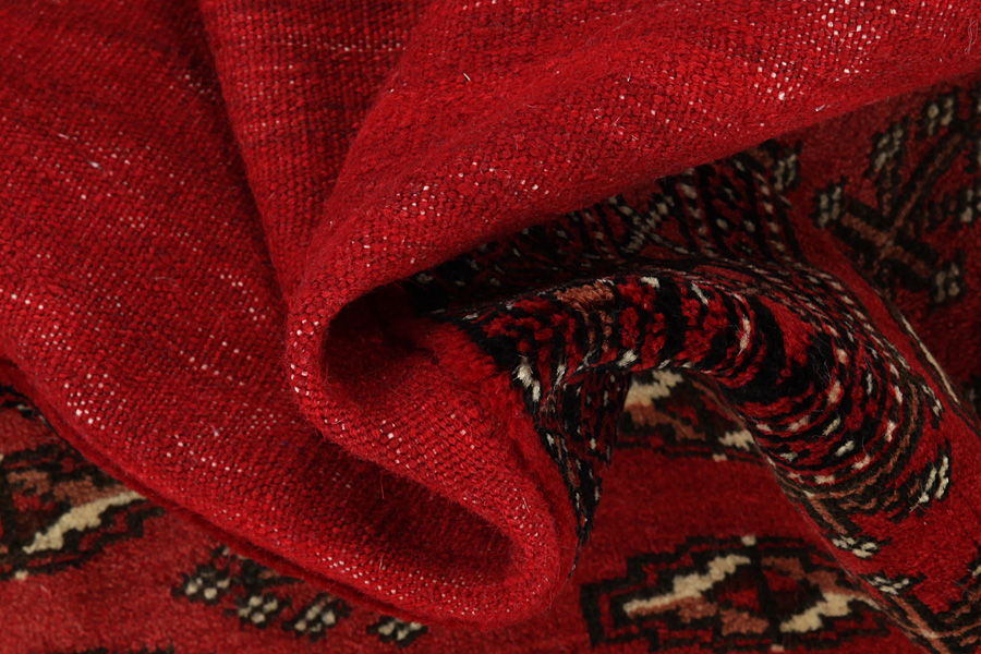 Bokhara Carpets : The Bokhara carpets are woven in Belutchistan and in different regions of Uzbekistan, Turkmenistan and Afghanistan. Turkmen carpets include Basjir, Salor, Tekke-Bochara, Jolam-Bocharaband, Ersari, Tjaudor and Yomut which are examples of the carpet style called Bokhara. Some areas of Turkmenistan where carpets are woven are Ashkabad, Bakharden, Geok-Tepe, Kizyl-Arvat and Merv. The deep red and the whole range of red from purple to brown are the dominant colors with repeating octagons, rhombi, yomut motifs being characteristic of these carpets. The warp of the carpets is always wool.