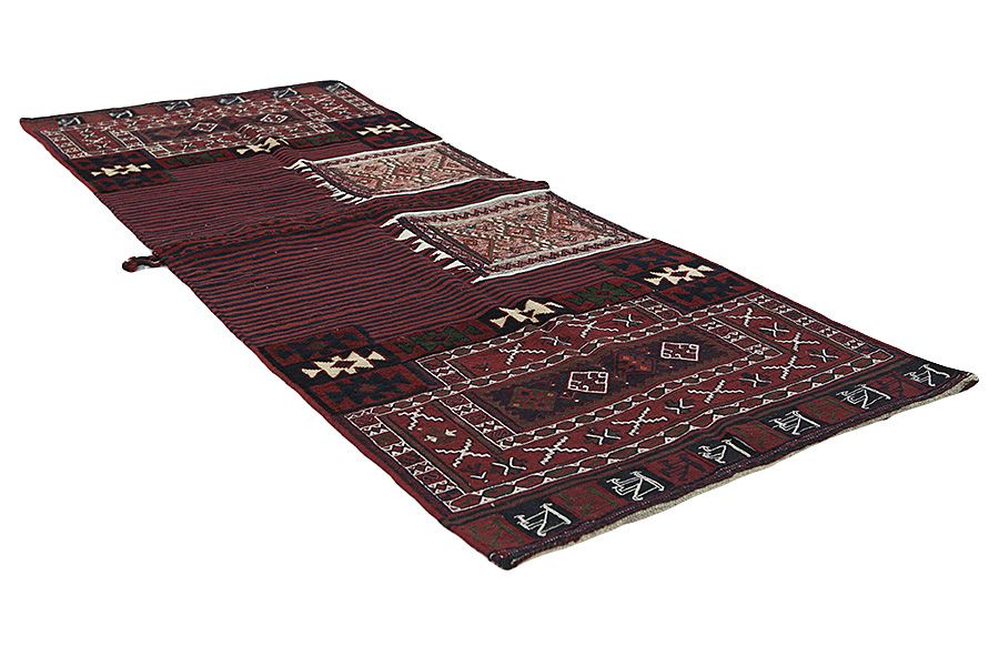 Saddle Bag Carpets : Horse saddle bags are made by Nomads for their own use. One can distinguish between the kilim-horse saddle bags and the knotted horse saddle bags. The front side of a knotted horse saddle bag is either knotted like a common carpet with knots or different mixed techniques are used. The side parts are often woven whereas in the middle part different weaving techniques such as kelim or Soumak are applied. The colors horse bags are dyed with are all natural and made by the Nomads themselves. Bags like these once carried everyday necessities for travelers on donkeys or horses. A delightful piece of art that provides a unique oriental atmosphere to your home. Horse saddle bags can be used as a seat cushion, as a floor cushion eg in front of your fireplace or as a wall decoration. Smaller horse saddle bags can be used as a newspaper holder to store newspapers or magazines when slung over a chair or sofa.