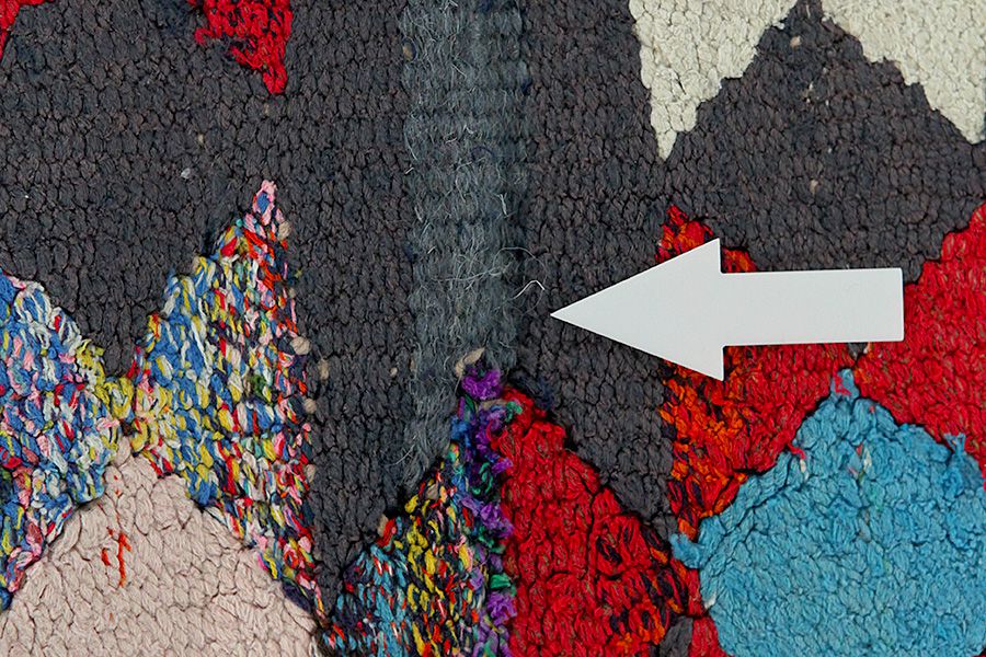 Abrash: Due to the different amount of grease in the wool and the added salt during the process of dyeing, the wool has got a varying colour absorbance. This is not very visible before weaving. During the weaving though, lines of the same colour are formed in the carpet. This is called Abrash (which in Farsi means little cloud) and it shows that the wool was not manufactured using chemical means and marks the naturalness and authenticity of the carpets. Examples