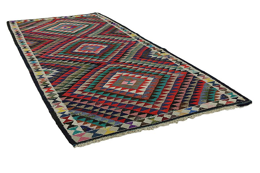 : This is a particular type of Oriental flat woven rug without a pile (which preceded the pile carpet) and is manufactured mainly by nomads in Persia, Afghanistan, Turkey and in various regions of the Caucasus. These textiles are rather small with a plain weave and no pile and they have got geometric patterns and rich colors. In order to weave them, natural materials like wool are used and sometimes silk for lightweight and delicate carpets. The coloring of yarns is done with plants and minerals that contribute to natural, beautiful colors. The long history of Kilim rugs goes back centuries to the nomads of Central Asia. Initially the carpets were mainly used in households and much later became commercial products, following the bloom of the oriental carpeting during the 16th and 17th century. They have many applications and can be used on the floor, as toppings or for decorating walls. The name Kilim is derived from the Persian word gelim. The most famous Persian carpets are Sumakh, Senneh, Fars and Qashqai. Many Kilims are also woven at the border between Persia and Afghanistan by the nomads of Balouch with dark earthy indicative colors.