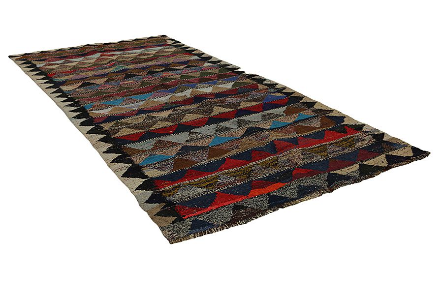 : This is a particular type of Oriental flat woven rug without a pile (which preceded the pile carpet) and is manufactured mainly by nomads in Persia, Afghanistan, Turkey and in various regions of the Caucasus. These textiles are rather small with a plain weave and no pile and they have got geometric patterns and rich colors. In order to weave them, natural materials like wool are used and sometimes silk for lightweight and delicate carpets. The coloring of yarns is done with plants and minerals that contribute to natural, beautiful colors. The long history of Kilim rugs goes back centuries to the nomads of Central Asia. Initially the carpets were mainly used in households and much later became commercial products, following the bloom of the oriental carpeting during the 16th and 17th century. They have many applications and can be used on the floor, as toppings or for decorating walls. The name Kilim is derived from the Persian word gelim. The most famous Persian carpets are Sumakh, Senneh, Fars and Qashqai. Many Kilims are also woven at the border between Persia and Afghanistan by the nomads of Balouch with dark earthy indicative colors.