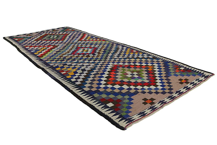 : This is a particular type of Oriental flat woven rug without a pile (which preceded the pile carpet) and is manufactured mainly by nomads in Persia, Afghanistan, Turkey and in various regions of the Caucasus. These textiles are rather small with a plain weave and no pile and they have got geometric patterns and rich colors. In order to weave them, natural materials like wool are used and sometimes silk for lightweight and delicate carpets. The coloring of yarns is done with plants and minerals that contribute to natural, beautiful colors. The long history of Kilim rugs goes back centuries to the nomads of Central Asia. Initially the carpets were mainly used in households and much later became commercial products, following the bloom of the oriental carpeting during the 16th and 17th century. They have many applications and can be used on the floor, as toppings or for decorating walls. The name Kilim is derived from the Persian word gelim. The most famous Persian carpets are Sumakh, Senneh, Fars and Qashqai. Many Kilims are also woven at the border between Persia and Afghanistan by the nomads of Balouch with dark earthy indicative colors.