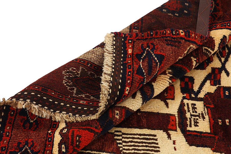 Qashqai Carpets : Qashqai carpets are woven by nomads who live in the mountainous areas of Southwest Persia, the provinces of Fars, Khuzestan, south of Isfahan and around the city Shiraz. Their carpets have a high knot density and a wide variety of designs, usually in deep red and blue colors. They weave carpets, Kilims and decorative textiles (ribbons, bags, etc.), which depict scenes from their lives with various representation of humans, animals, birds, trees and flowers. They also depict historical monuments, mostly from Persepolis.