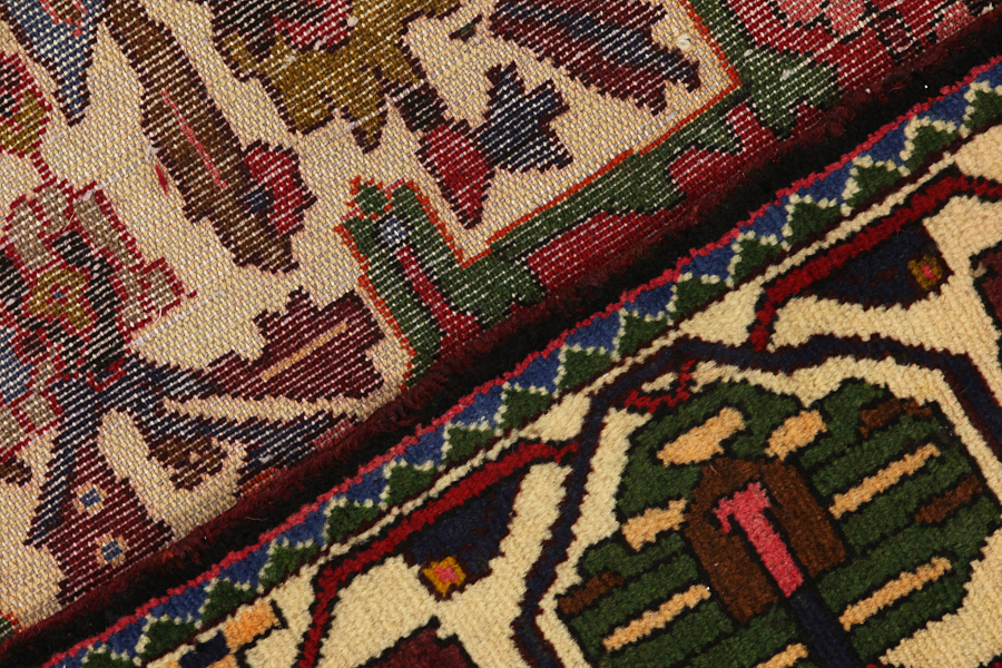 Abrash: Due to the different amount of grease in the wool and the added salt during the process of dyeing, the wool has got a varying colour absorbance. This is not very visible before weaving. During the weaving though, lines of the same colour are formed in the carpet. This is called Abrash (which in Farsi means little cloud) and it shows that the wool was not manufactured using chemical means and marks the naturalness and authenticity of the carpets. Examples