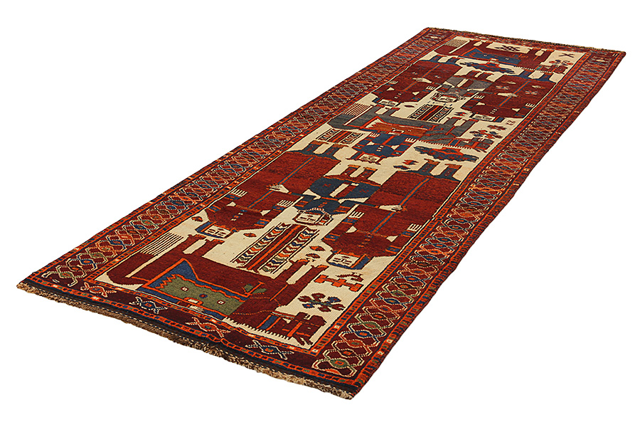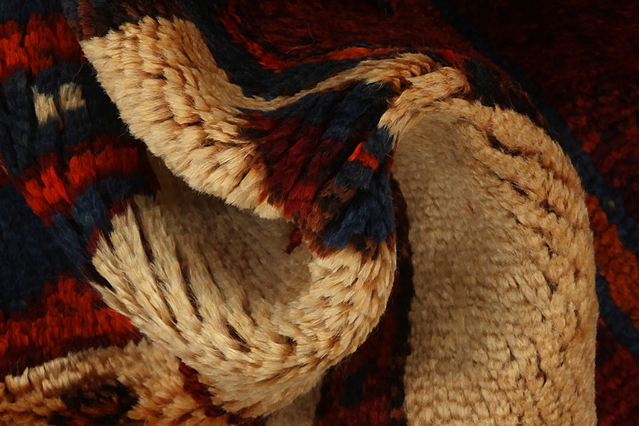 Qashqai Carpets : Qashqai carpets are woven by nomads who live in the mountainous areas of Southwest Persia, the provinces of Fars, Khuzestan, south of Isfahan and around the city Shiraz. Their carpets have a high knot density and a wide variety of designs, usually in deep red and blue colors. They weave carpets, Kilims and decorative textiles (ribbons, bags, etc.), which depict scenes from their lives with various representation of humans, animals, birds, trees and flowers. They also depict historical monuments, mostly from Persepolis.