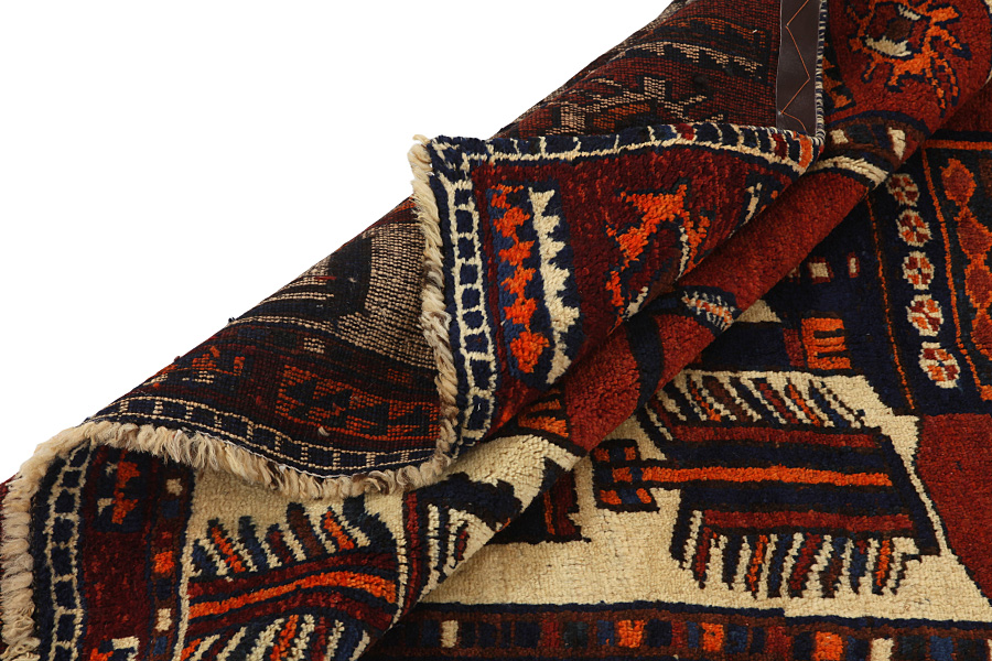 Qashqai Carpets : Qashqai carpets are woven by nomads who live in the mountainous areas of Southwest Persia, the provinces of Fars, Khuzestan, south of Isfahan and around the city Shiraz. Their carpets have a high knot density and a wide variety of designs, usually in deep red and blue colors. They weave carpets, Kilims and decorative textiles (ribbons, bags, etc.), which depict scenes from their lives with various representation of humans, animals, birds, trees and flowers. They also depict historical monuments, mostly from Persepolis.