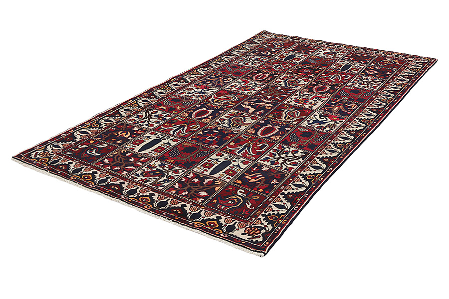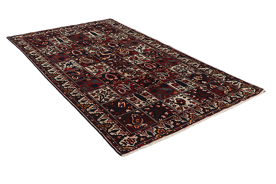 Bakhtiari Carpets : In the mountains Zagros, west of the city of Isfahan, around the town of Shahr-e-Kurd, live the nomads Bakhtiar. Their carpets are known for the design with various repeating squares in which flowers and animals are depicted. For this reason the design is called "garden"(Khesti). Their carpets are very durable with a dense weave and very good quality Persian wool coming from sheep grazing at a high altitude. The best Bakhtiar rugs and carpets with highest knot density are often called Bibibaff. Also in many designs we see influences from Isfahan carpets. (Boldaji - Feridan - Saman).