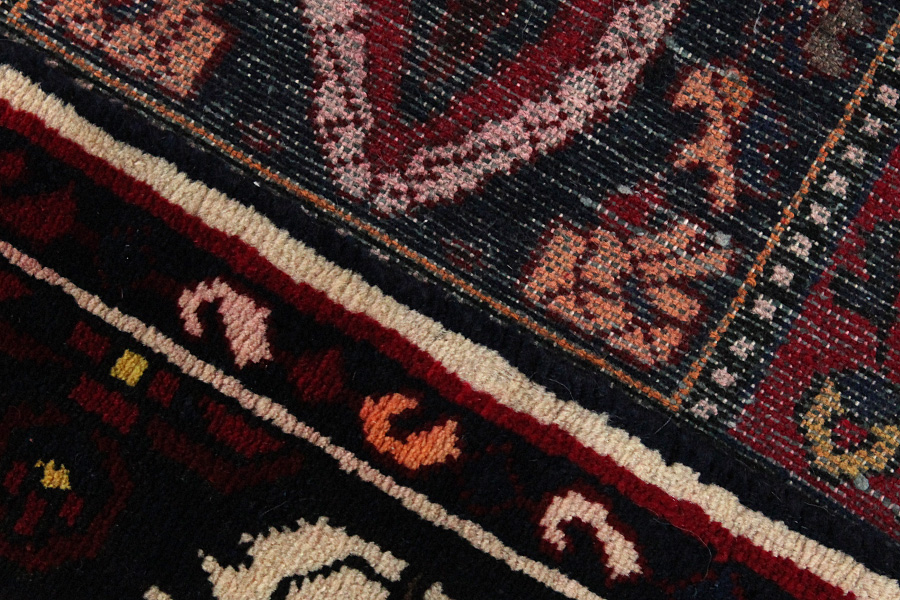 Abrash: Due to the different amount of grease in the wool and the added salt during the process of dyeing, the wool has got a varying colour absorbance. This is not very visible before weaving. During the weaving though, lines of the same colour are formed in the carpet. This is called Abrash (which in Farsi means little cloud) and it shows that the wool was not manufactured using chemical means and marks the naturalness and authenticity of the carpets. Examples