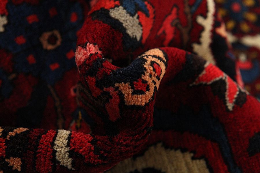 Abrash: Due to the different amount of grease in the wool and the added salt during the process of dyeing, the wool has got a varying colour absorbance. This is not very visible before weaving. During the weaving though, lines of the same colour are formed in the carpet. This is called Abrash (which in Farsi means little cloud) and it shows that the wool was not manufactured using chemical means and marks the naturalness and authenticity of the carpets. Examples