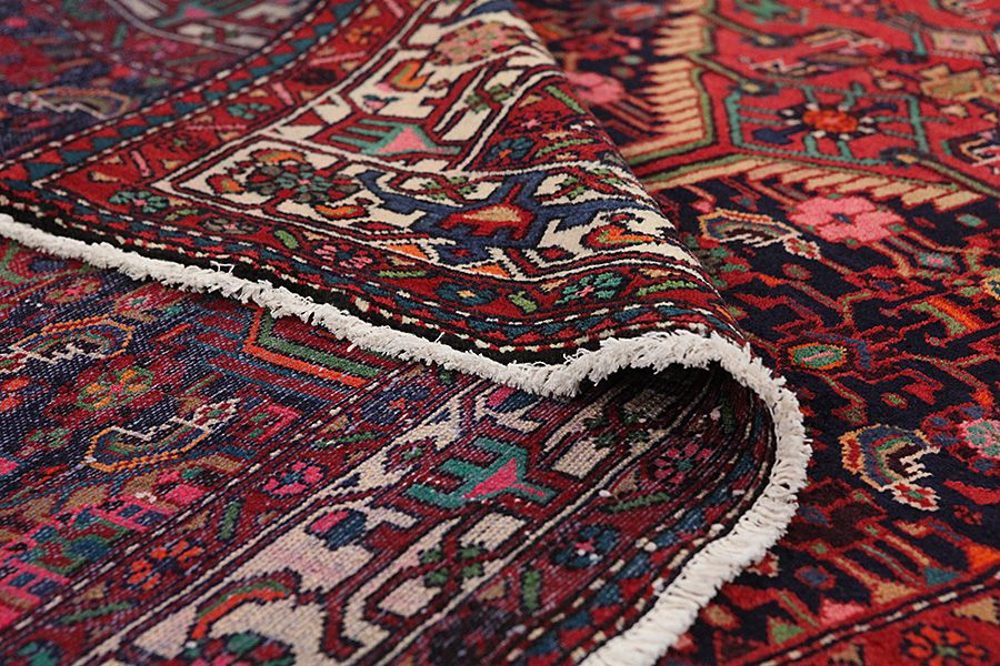Abrash: Due to the different amount of grease in the wool and the added salt during the process of dyeing, the wool has got a varying colour absorbance. This is not very visible before weaving. During the weaving though, lines of the same colour are formed in the carpet. This is called Abrash (which in Farsi means little cloud) and it shows that the wool was not manufactured using chemical means and marks the naturalness and authenticity of the carpets. Examples
