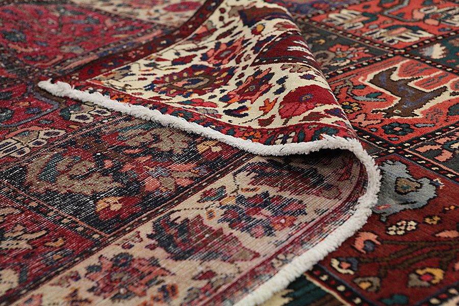 Bakhtiari Carpets : In the mountains Zagros, west of the city of Isfahan, around the town of Shahr-e-Kurd, live the nomads Bakhtiar. Their carpets are known for the design with various repeating squares in which flowers and animals are depicted. For this reason the design is called "garden"(Khesti). Their carpets are very durable with a dense weave and very good quality Persian wool coming from sheep grazing at a high altitude. The best Bakhtiar rugs and carpets with highest knot density are often called Bibibaff. Also in many designs we see influences from Isfahan carpets. (Boldaji - Feridan - Saman).