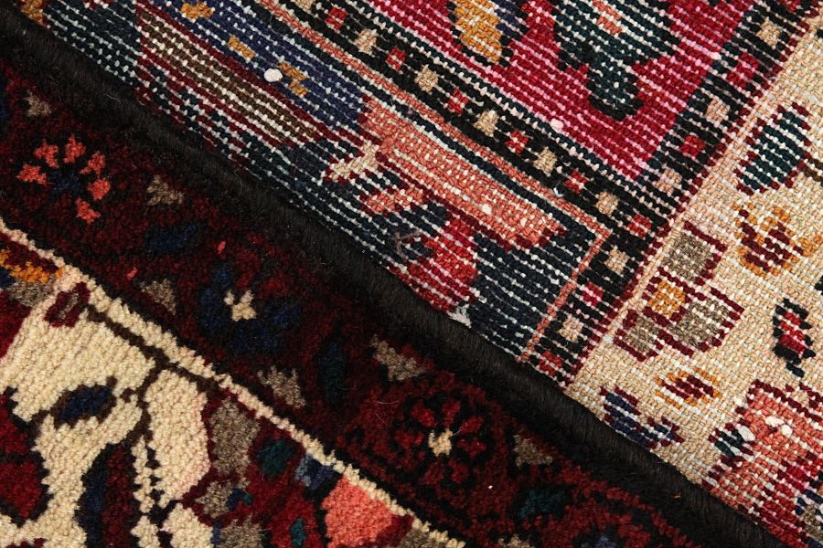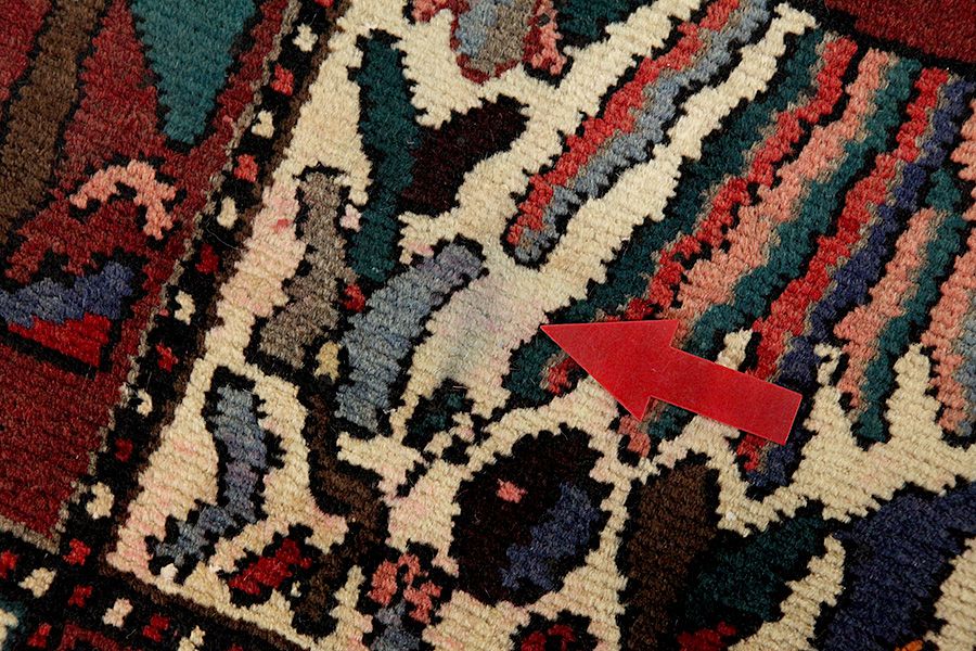 Abrash: Due to the different amount of grease in the wool and the added salt during the process of dyeing, the wool has got a varying colour absorbance. This is not very visible before weaving. During the weaving though, lines of the same colour are formed in the carpet. This is called Abrash (which in Farsi means little cloud) and it shows that the wool was not manufactured using chemical means and marks the naturalness and authenticity of the carpets. Examples