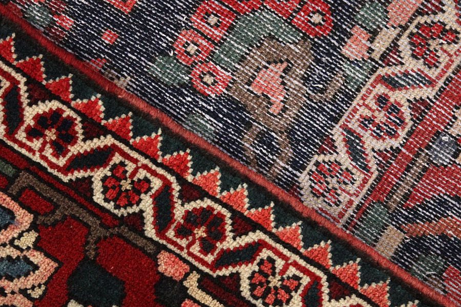 Abrash: Due to the different amount of grease in the wool and the added salt during the process of dyeing, the wool has got a varying colour absorbance. This is not very visible before weaving. During the weaving though, lines of the same colour are formed in the carpet. This is called Abrash (which in Farsi means little cloud) and it shows that the wool was not manufactured using chemical means and marks the naturalness and authenticity of the carpets. Examples