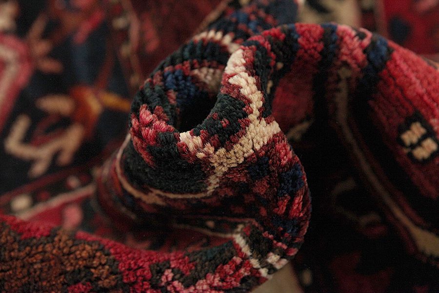 Abrash: Due to the different amount of grease in the wool and the added salt during the process of dyeing, the wool has got a varying colour absorbance. This is not very visible before weaving. During the weaving though, lines of the same colour are formed in the carpet. This is called Abrash (which in Farsi means little cloud) and it shows that the wool was not manufactured using chemical means and marks the naturalness and authenticity of the carpets. Examples