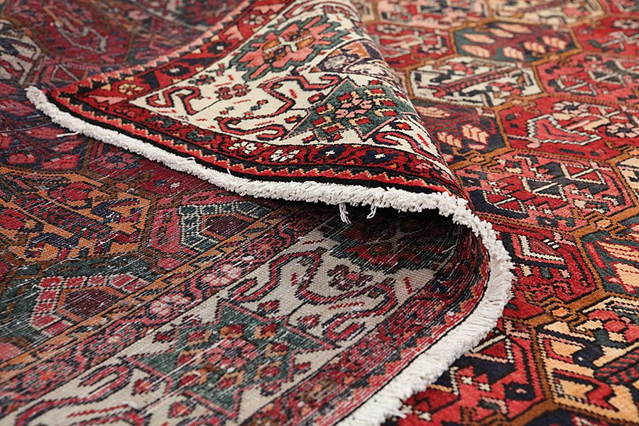 Bakhtiari Carpets : In the mountains Zagros, west of the city of Isfahan, around the town of Shahr-e-Kurd, live the nomads Bakhtiar. Their carpets are known for the design with various repeating squares in which flowers and animals are depicted. For this reason the design is called "garden"(Khesti). Their carpets are very durable with a dense weave and very good quality Persian wool coming from sheep grazing at a high altitude. The best Bakhtiar rugs and carpets with highest knot density are often called Bibibaff. Also in many designs we see influences from Isfahan carpets. (Boldaji - Feridan - Saman).