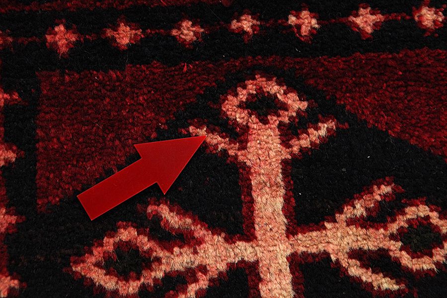 Abrash: Due to the different amount of grease in the wool and the added salt during the process of dyeing, the wool has got a varying colour absorbance. This is not very visible before weaving. During the weaving though, lines of the same colour are formed in the carpet. This is called Abrash (which in Farsi means little cloud) and it shows that the wool was not manufactured using chemical means and marks the naturalness and authenticity of the carpets. Examples