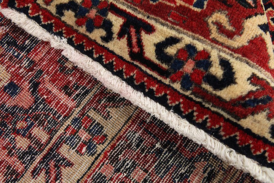 Abrash: Due to the different amount of grease in the wool and the added salt during the process of dyeing, the wool has got a varying colour absorbance. This is not very visible before weaving. During the weaving though, lines of the same colour are formed in the carpet. This is called Abrash (which in Farsi means little cloud) and it shows that the wool was not manufactured using chemical means and marks the naturalness and authenticity of the carpets. Examples