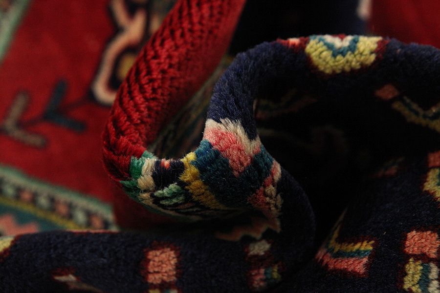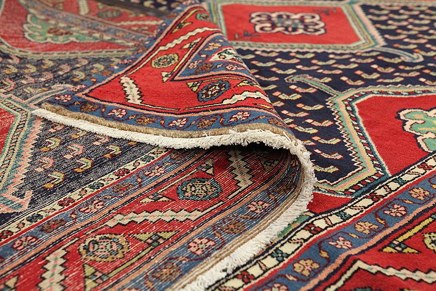 Enjelas Carpets : The small town Enjelas is located 15 km south of Hamadan. The carpets woven here have the same name and are dense and very durable. The most common design is called the "Herati" and is woven border to border repeatedly, rarely with a central medallion. The excellent quality of the wool they use is painted with natural colors that give the carpets a natural glow. The main colors used in Enjelas rugs are deep red with a complementary dark blue or vice versa, with a third color beingthe unpainted natural beige of the animal, which is used mainly in the borders and less in the rest of the area.