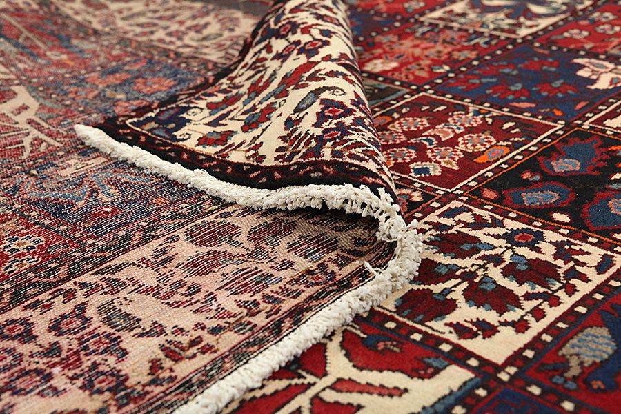 Bakhtiari Carpets : In the mountains Zagros, west of the city of Isfahan, around the town of Shahr-e-Kurd, live the nomads Bakhtiar. Their carpets are known for the design with various repeating squares in which flowers and animals are depicted. For this reason the design is called "garden"(Khesti). Their carpets are very durable with a dense weave and very good quality Persian wool coming from sheep grazing at a high altitude. The best Bakhtiar rugs and carpets with highest knot density are often called Bibibaff. Also in many designs we see influences from Isfahan carpets. (Boldaji - Feridan - Saman).