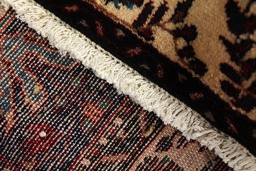 Abrash: Due to the different amount of grease in the wool and the added salt during the process of dyeing, the wool has got a varying colour absorbance. This is not very visible before weaving. During the weaving though, lines of the same colour are formed in the carpet. This is called Abrash (which in Farsi means little cloud) and it shows that the wool was not manufactured using chemical means and marks the naturalness and authenticity of the carpets. Examples