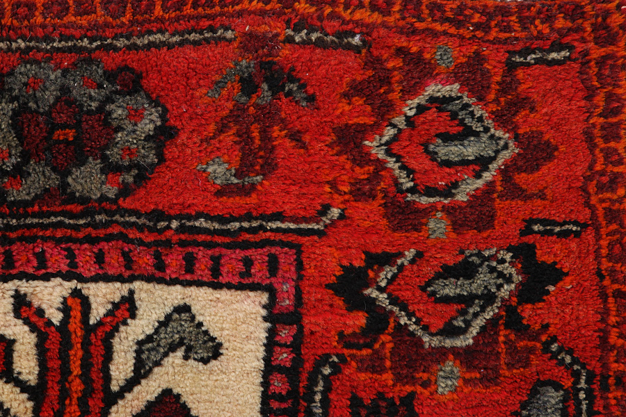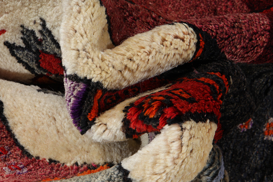 Abrash: Due to the different amount of grease in the wool and the added salt during the process of dyeing, the wool has got a varying colour absorbance. This is not very visible before weaving. During the weaving though, lines of the same colour are formed in the carpet. This is called Abrash (which in Farsi means little cloud) and it shows that the wool was not manufactured using chemical means and marks the naturalness and authenticity of the carpets. Examples