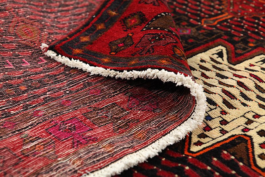 Abrash: Due to the different amount of grease in the wool and the added salt during the process of dyeing, the wool has got a varying colour absorbance. This is not very visible before weaving. During the weaving though, lines of the same colour are formed in the carpet. This is called Abrash (which in Farsi means little cloud) and it shows that the wool was not manufactured using chemical means and marks the naturalness and authenticity of the carpets. Examples