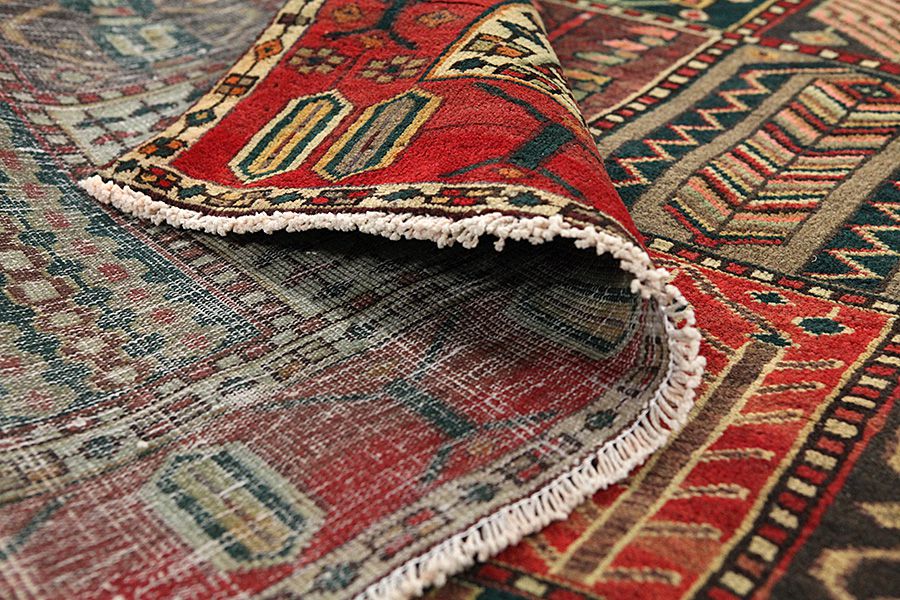 Abrash: Due to the different amount of grease in the wool and the added salt during the process of dyeing, the wool has got a varying colour absorbance. This is not very visible before weaving. During the weaving though, lines of the same colour are formed in the carpet. This is called Abrash (which in Farsi means little cloud) and it shows that the wool was not manufactured using chemical means and marks the naturalness and authenticity of the carpets. Examples
