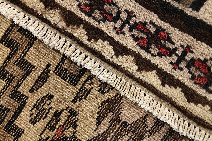 Abrash: Due to the different amount of grease in the wool and the added salt during the process of dyeing, the wool has got a varying colour absorbance. This is not very visible before weaving. During the weaving though, lines of the same colour are formed in the carpet. This is called Abrash (which in Farsi means little cloud) and it shows that the wool was not manufactured using chemical means and marks the naturalness and authenticity of the carpets. Examples