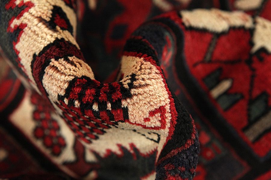Abrash: Due to the different amount of grease in the wool and the added salt during the process of dyeing, the wool has got a varying colour absorbance. This is not very visible before weaving. During the weaving though, lines of the same colour are formed in the carpet. This is called Abrash (which in Farsi means little cloud) and it shows that the wool was not manufactured using chemical means and marks the naturalness and authenticity of the carpets. Examples