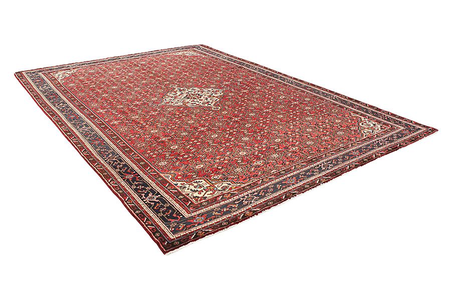 Borchalou Carpets : The name of carpets woven in the town of Borchalou in Northwestern Persia, east of the city Hamadan. Borchalou rugs are the best in the region of Hamadan, because shiny wool of very good quality is used to weave them. The weave is delicate and complex. Their fine curvilinear designs with traditional round medallions instead of rhombi make them stand out. The wide borders filled with flowers create a wonderful frame for the central designs of the rugs. The colors vary and are dominated by shades of red, blue, turquoise and orange.