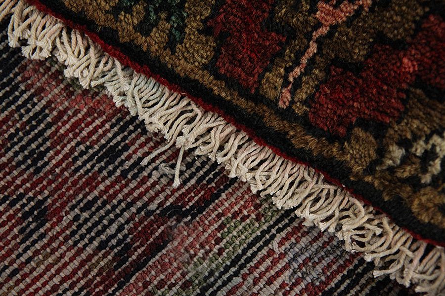 Abrash: Due to the different amount of grease in the wool and the added salt during the process of dyeing, the wool has got a varying colour absorbance. This is not very visible before weaving. During the weaving though, lines of the same colour are formed in the carpet. This is called Abrash (which in Farsi means little cloud) and it shows that the wool was not manufactured using chemical means and marks the naturalness and authenticity of the carpets. Examples